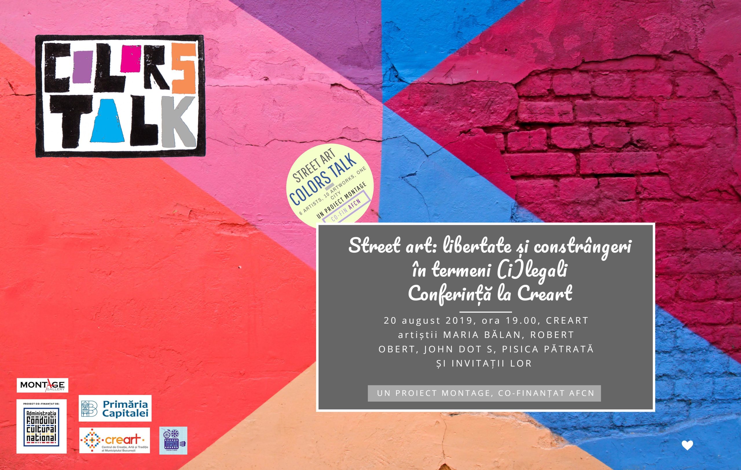În august, la București, se demarează – ColorsTalk, un proiect de producție și expunere a 10 lucrări de street art, într-un proces inversat, de la producție la integrare în contexte urbane (publice sau private) în care creațiile devin vizibile. 6 artiști urbani din România: Pisica Patrata, Maria Bălan, John Dot S, Robert Obert și 2 […]